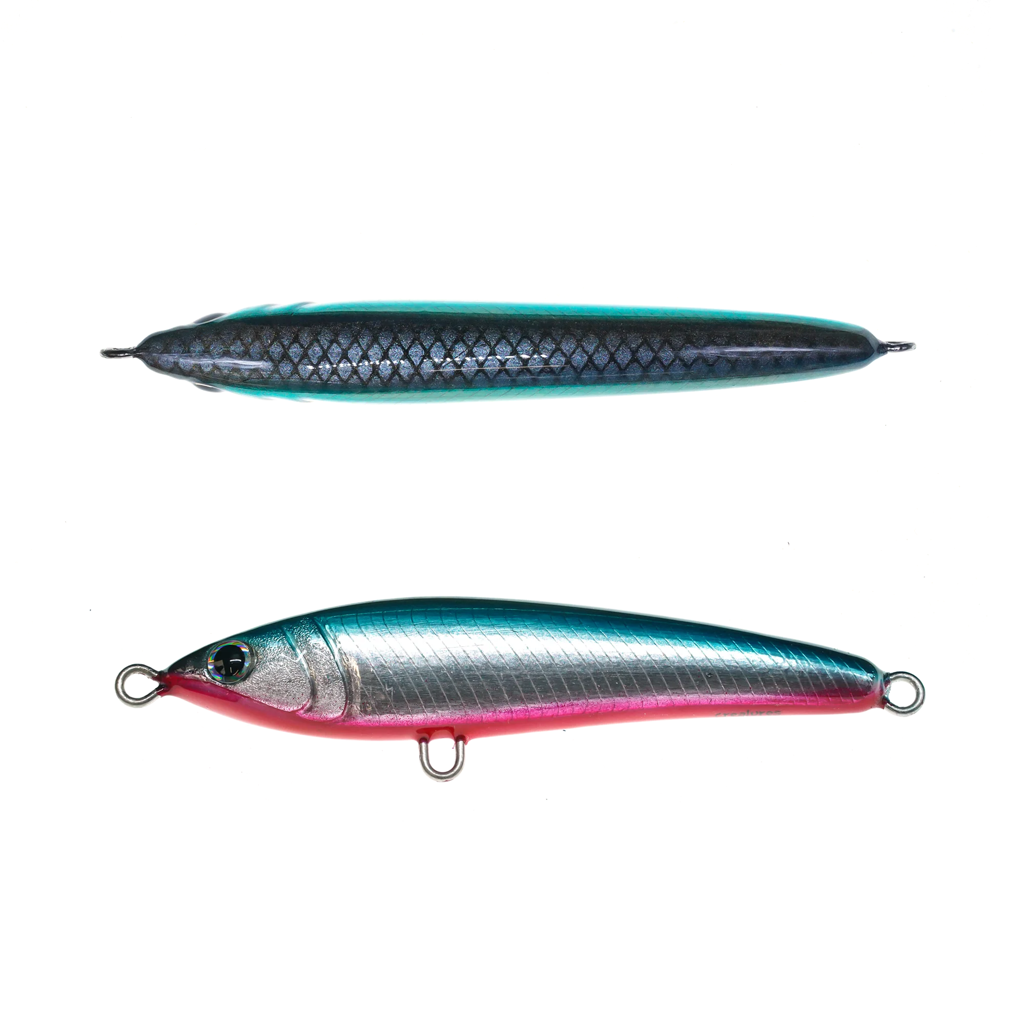 Il s'agit d'un stickbait sinking de forme compacte et de finition réaliste. Fabriqué à la main et en résine, avec une sangle en acier inoxydable de 1,6 mm incorporée dans le plomb et protégée par une finition époxy brillante.