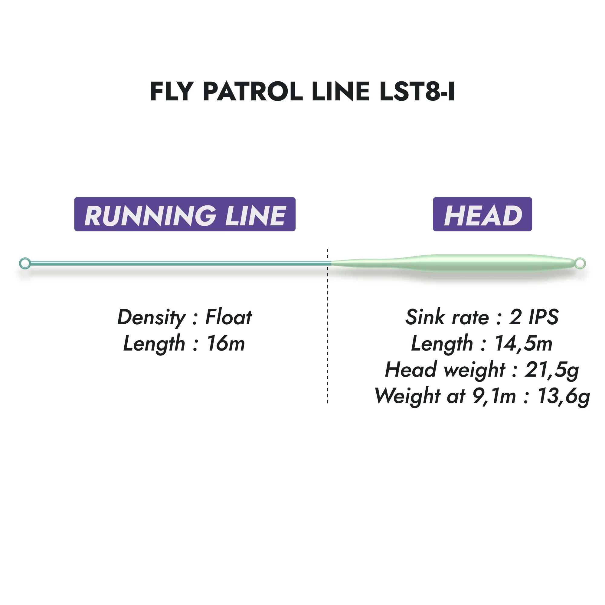 Soie intermédiaire #8 de type WF, avec un profil avancé distance (LST) pour améliorer vos présentations longues distances. Pointe plongeante S2 pour des présentations très multiples : en sub-surface en récupération rapide, entre deux eaux en effectuant des stops, ou proche du fond en strippant très lentement.
